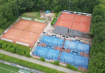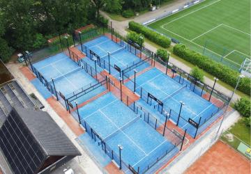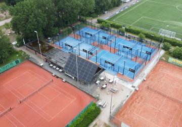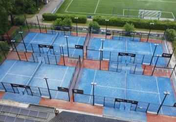 Amerongen Amerongse TV Aantal banen 4 Type kooi Padel-iD Panorama (Full View) Coating Zwart Glas 12mm Kunstgras speelveld / omloop Ten Cate blauw/rood Verlichting Philips 300 lux Vloer Kropor waterdoorlatend drainbeton Hoofdaannemer Rekre Sport Aanleg jaar 2024