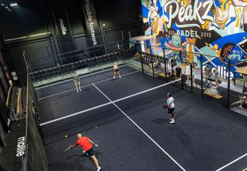 Amsterdam Peakz Padel Zuid Oost Aantal banen 9 + 1 Type kooi Padel-iD Pure View Coating Zwart Glas 12mm Kunstgras speelveld / omloop Padel RS 12-TXI Verlichting LED lijnverlichting - dimbaar Hoofdaannemer Rekre Sport Aanleg jaar 2025